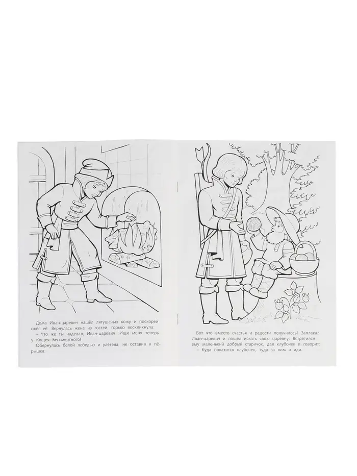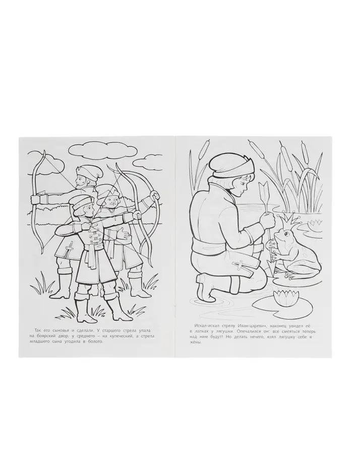 - 8 страниц с крупными детализированными изображениями, посвящёнными истории про царевну-лягушку.
