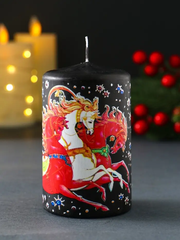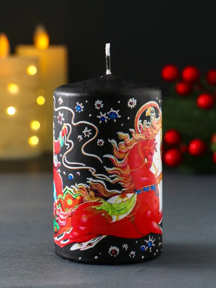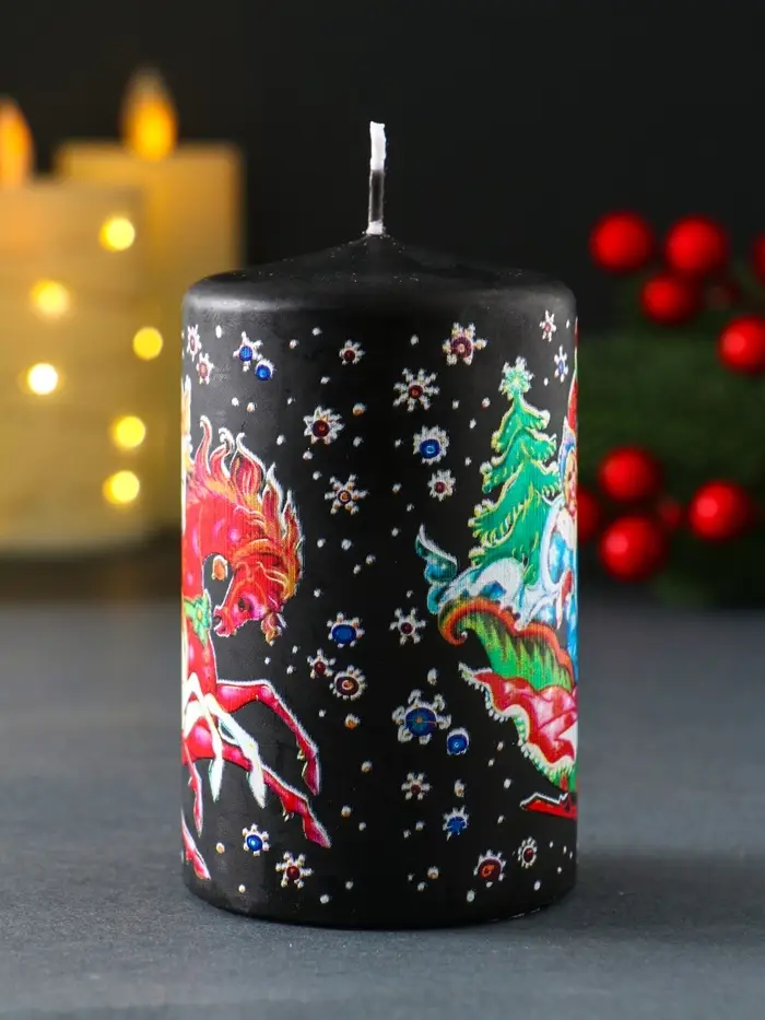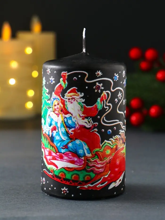 Свеча новогодняя пеньковая "Новый год. Доставка подарков" 6х6х10 см