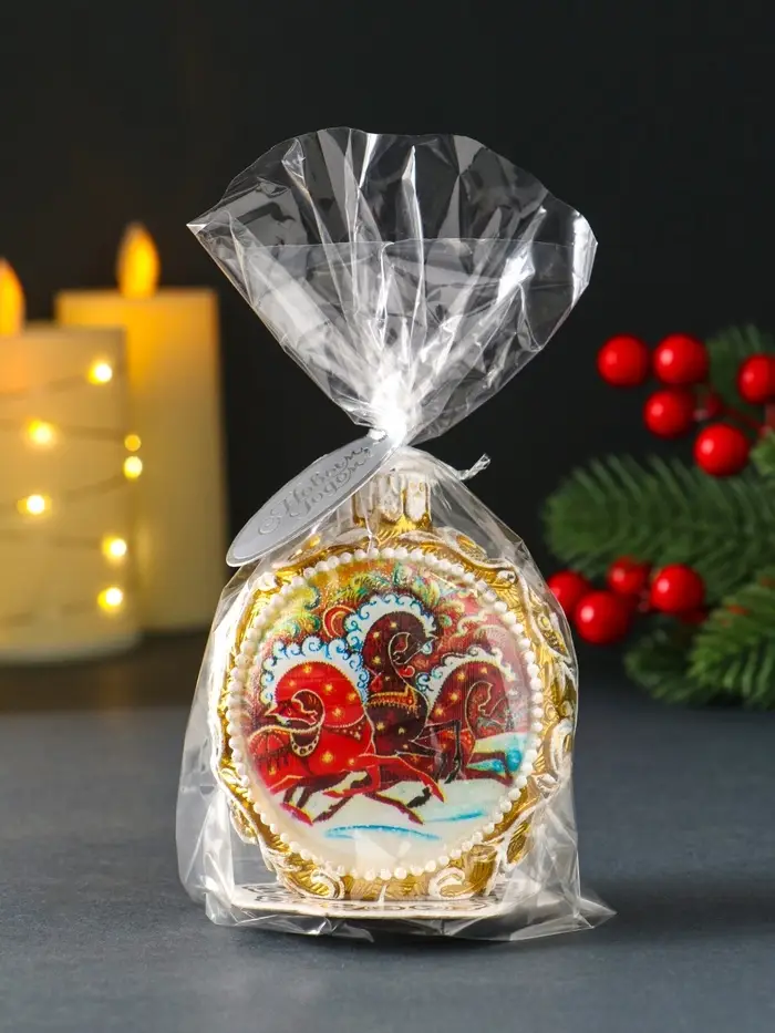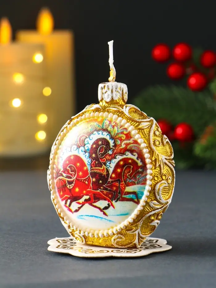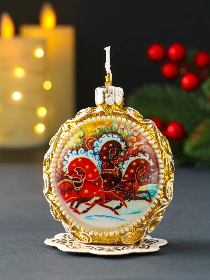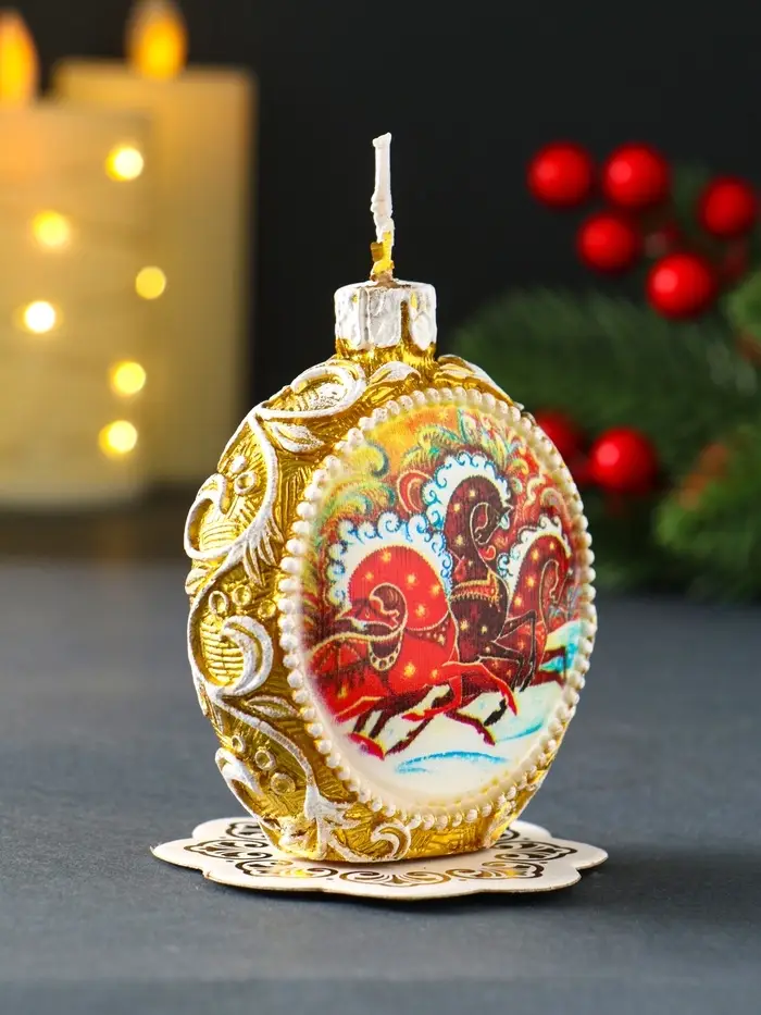 Свеча новогодняя "Шар узорный. Три коня" золотой, 7,2х3,8х8,5 см