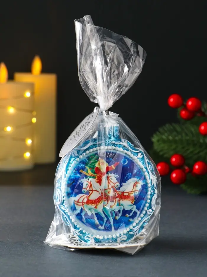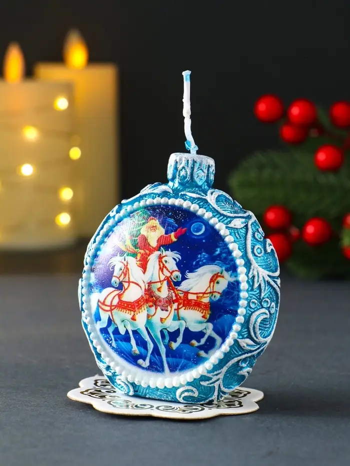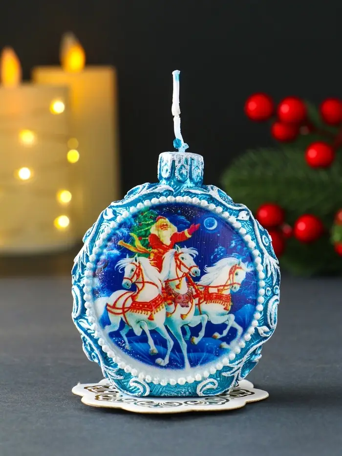 Свеча новогодняя "Дед Мороз и три коня" синий 7,2х3,8х8,5 см