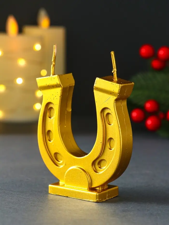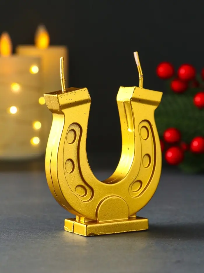 Свеча новогодняя "Подкова" золотой 7х2,5х8,5 см