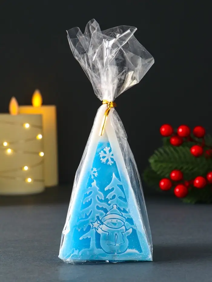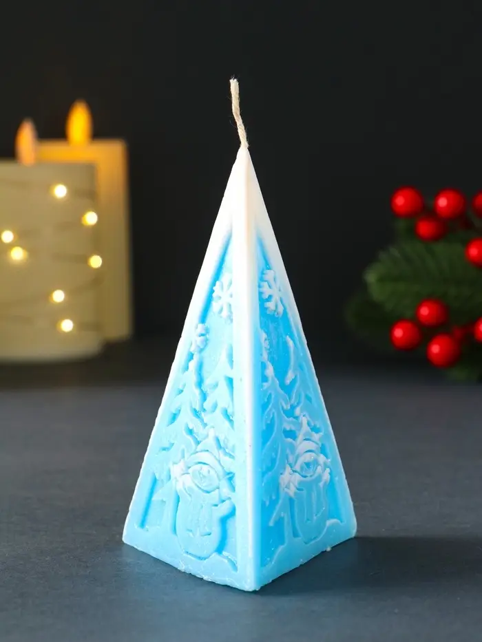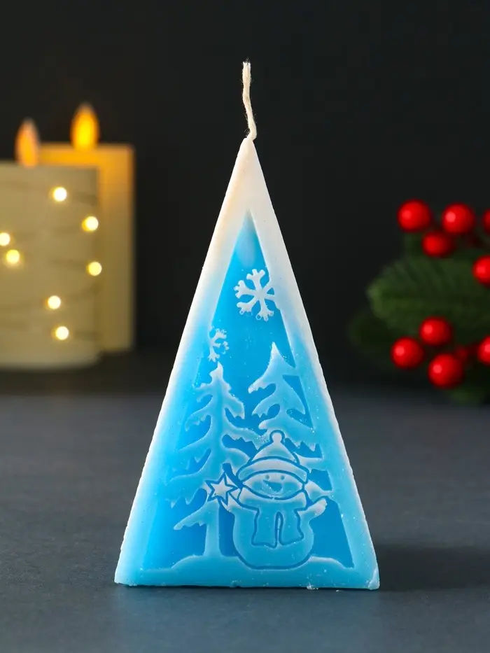 Свеча новогодняя пирамида "Снеговик"12х6,5мм, голубой