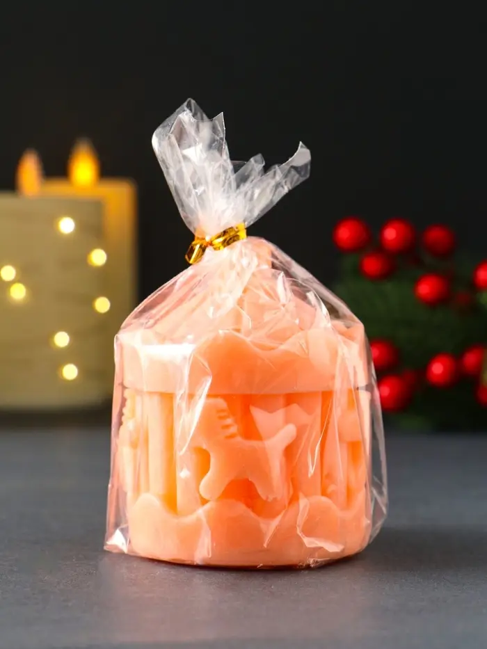 Свеча новогодняя "Карусель с лошадками" 60х80 мм, персиковый