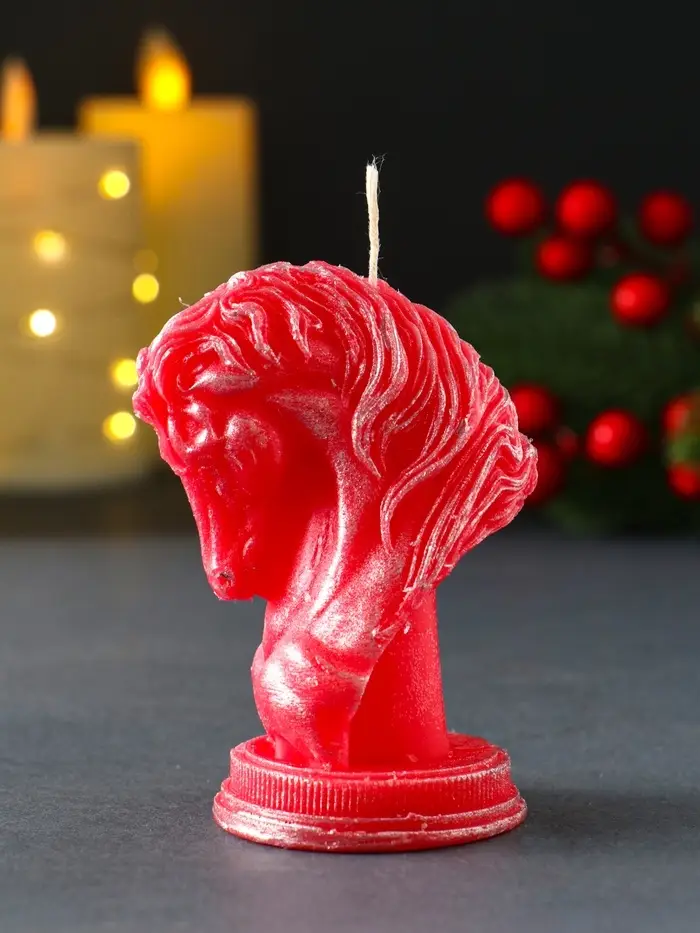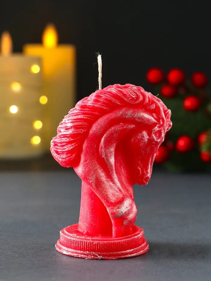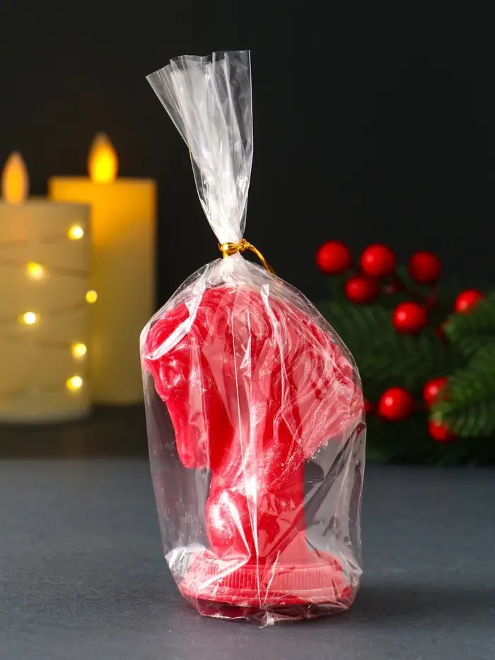 Свеча новогодняя "Конь" 9х6х5cм, ЛАК, красный