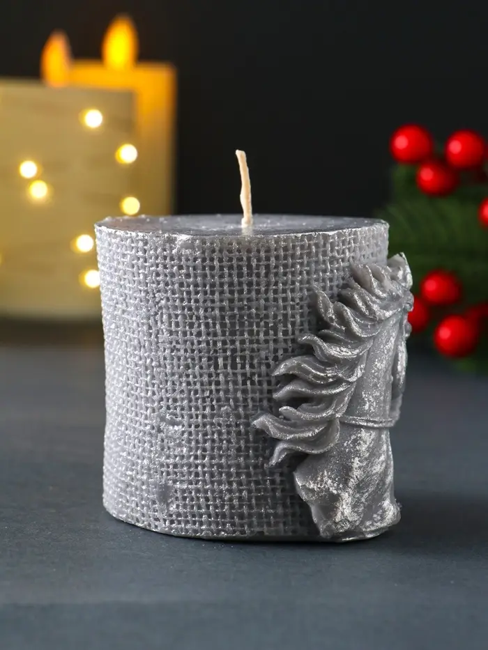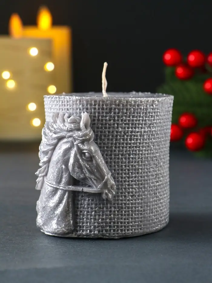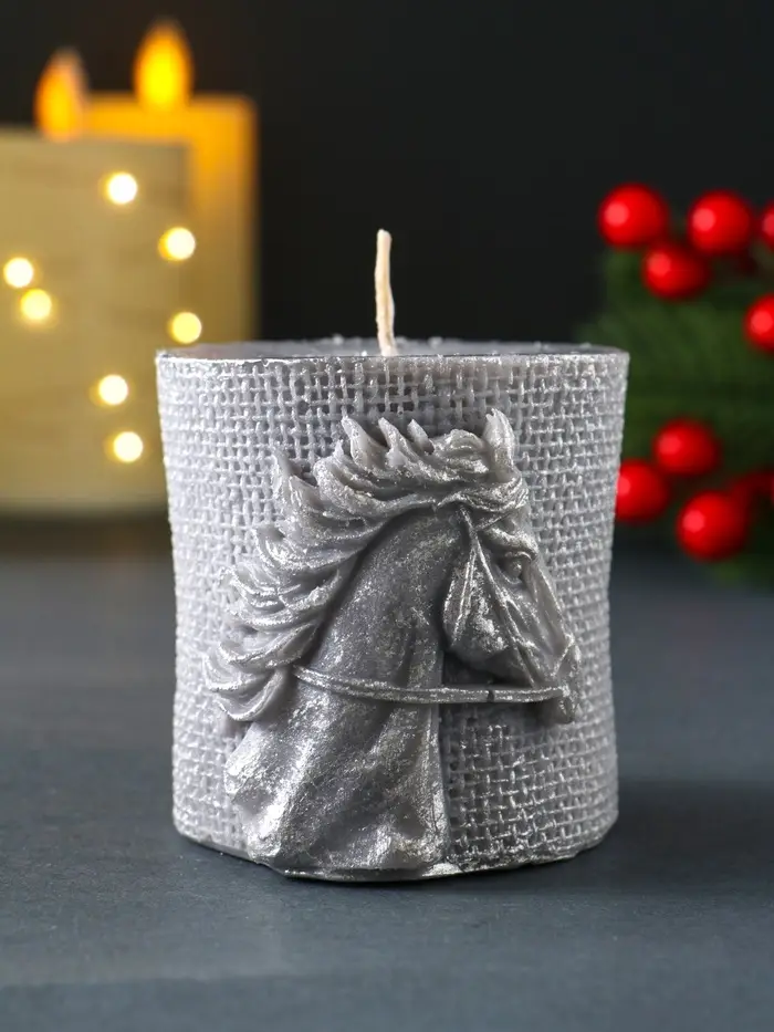 Свеча новогодняя "Лошадь Бохо" 70х75 мм, ЛАК, серый