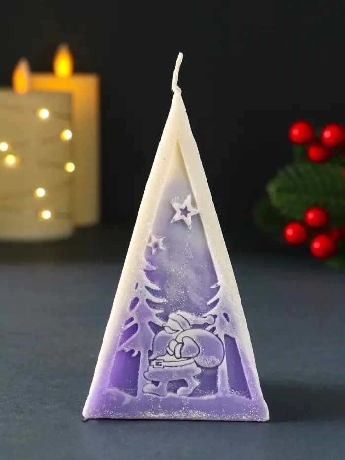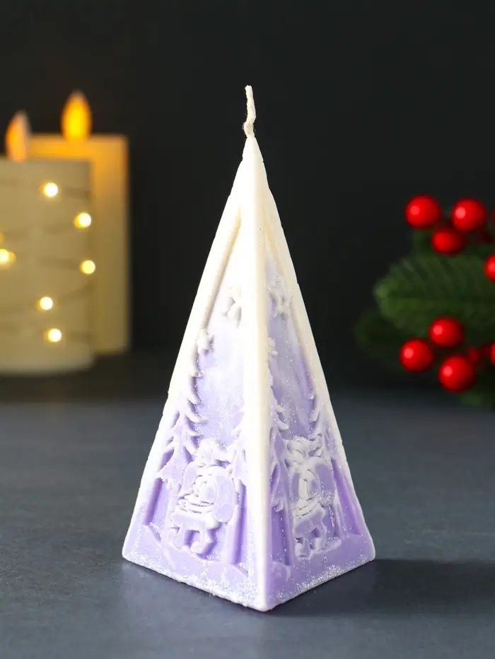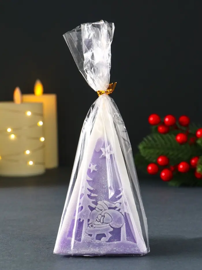Свеча новогодняя пирамида Дед Мороз" 70х120 мм, фиолетовый