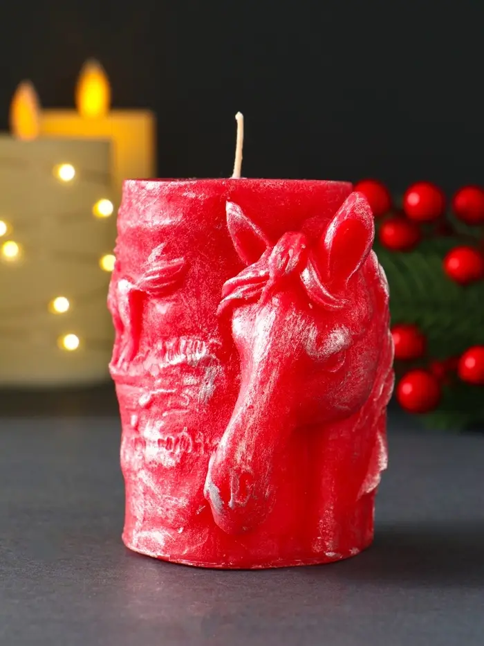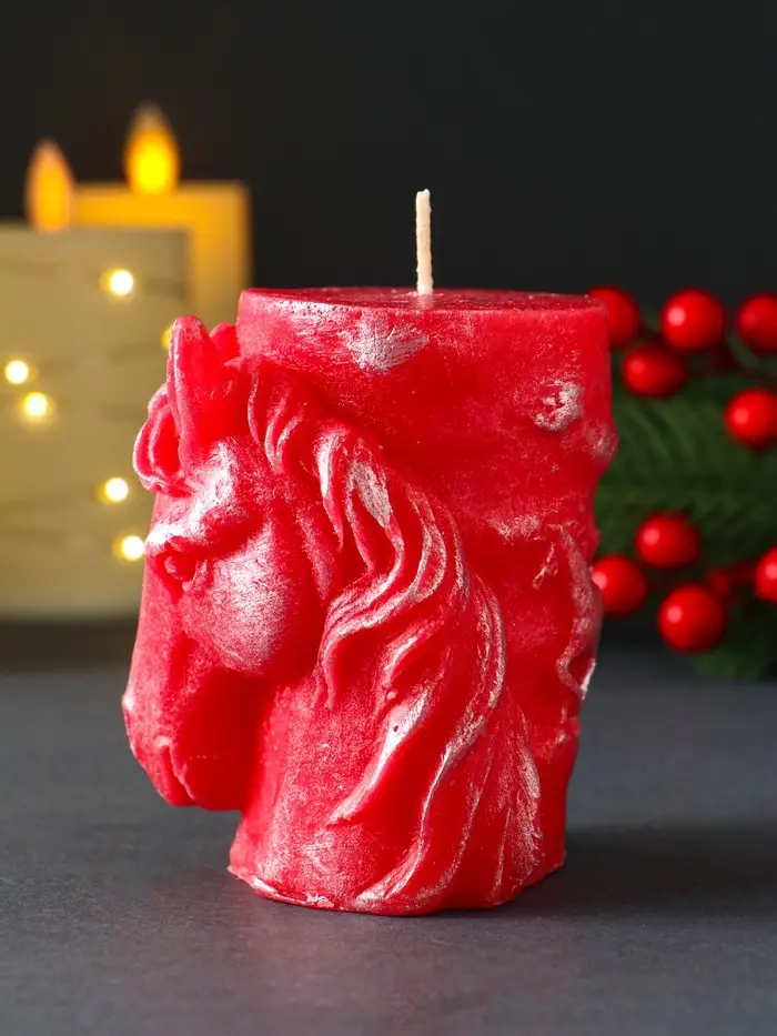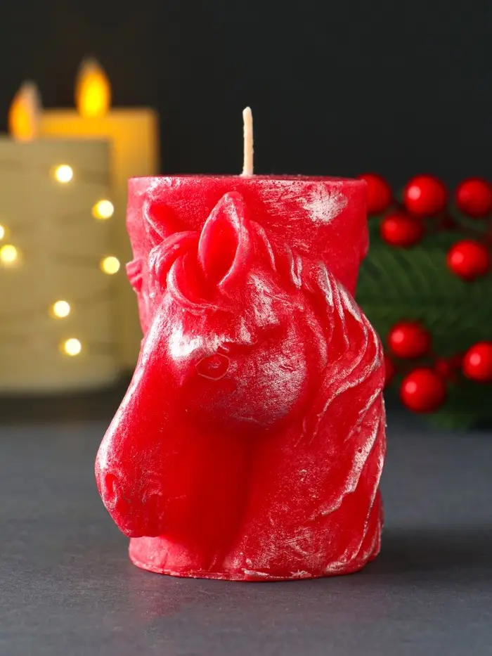 Свеча новогодняя "Барельеф Лошадь" 85х95 мм, ЛАК, красный