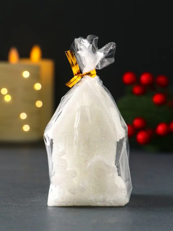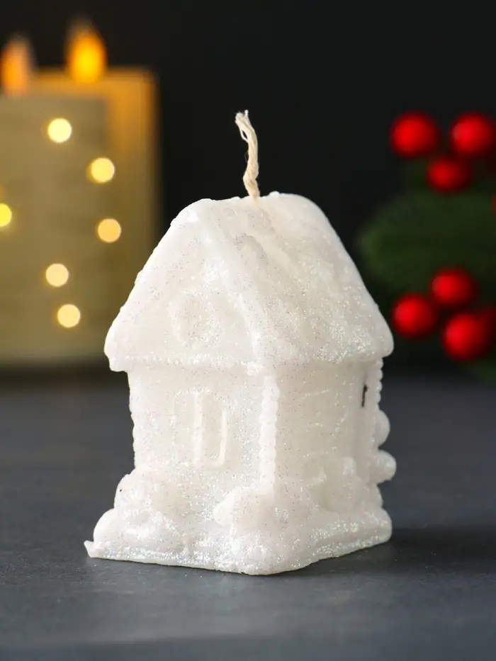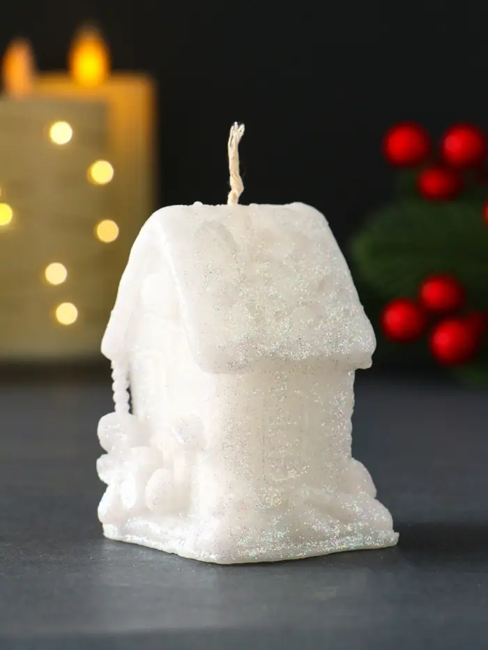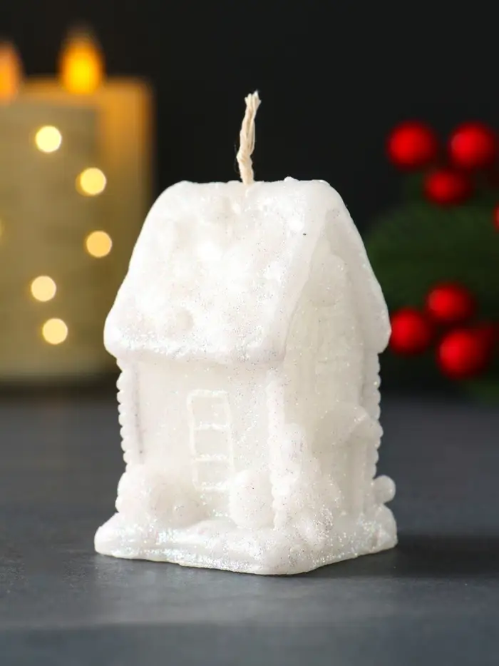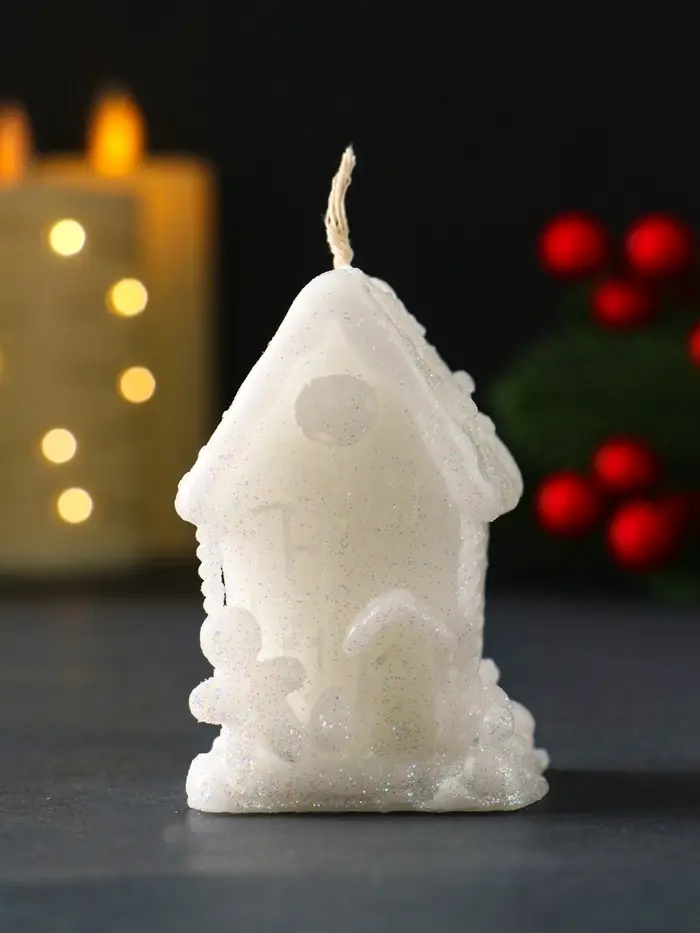 Свеча новогодняя "Домик с Пряником" 40х70мм, белый
