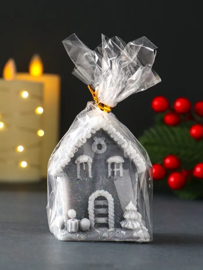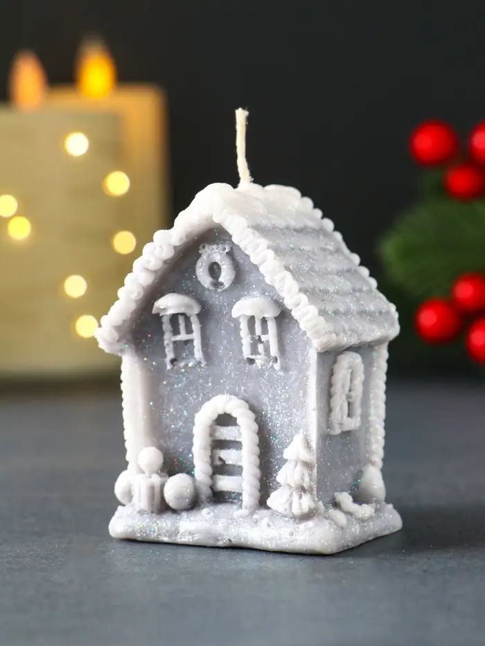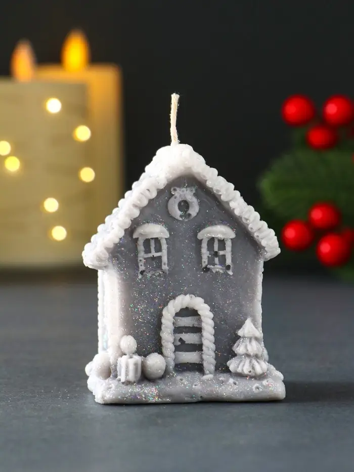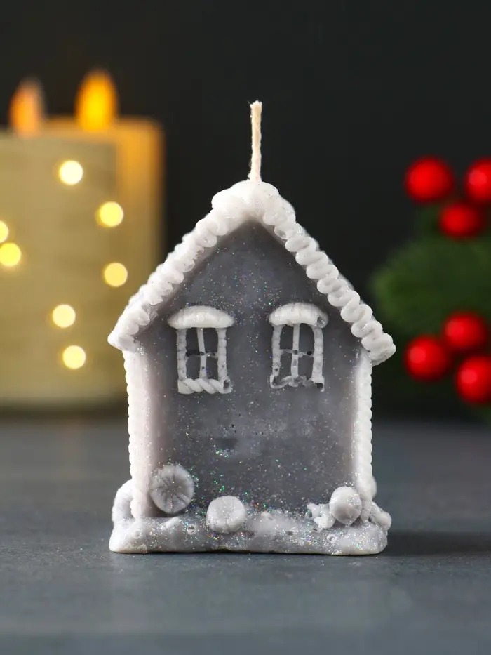 Свеча новогодняя "Домик с Ёлкой" 55х70 мм, серый