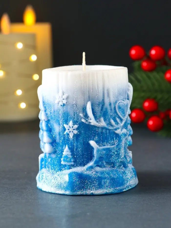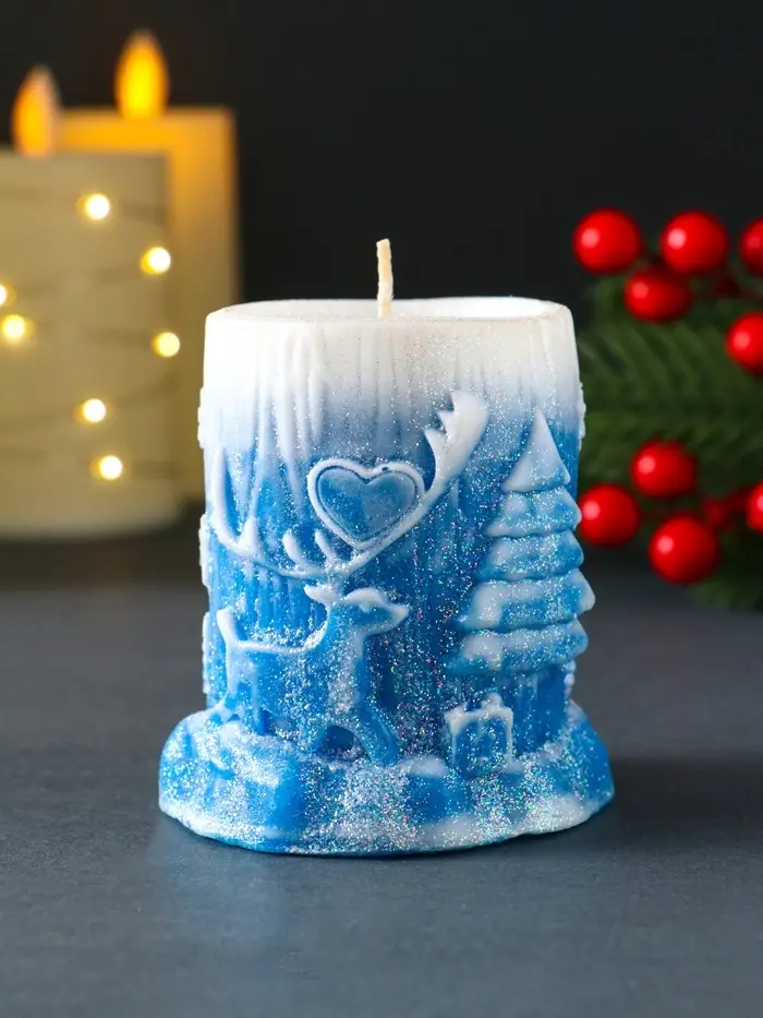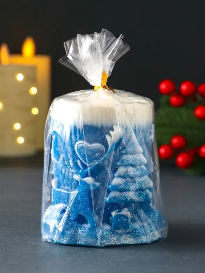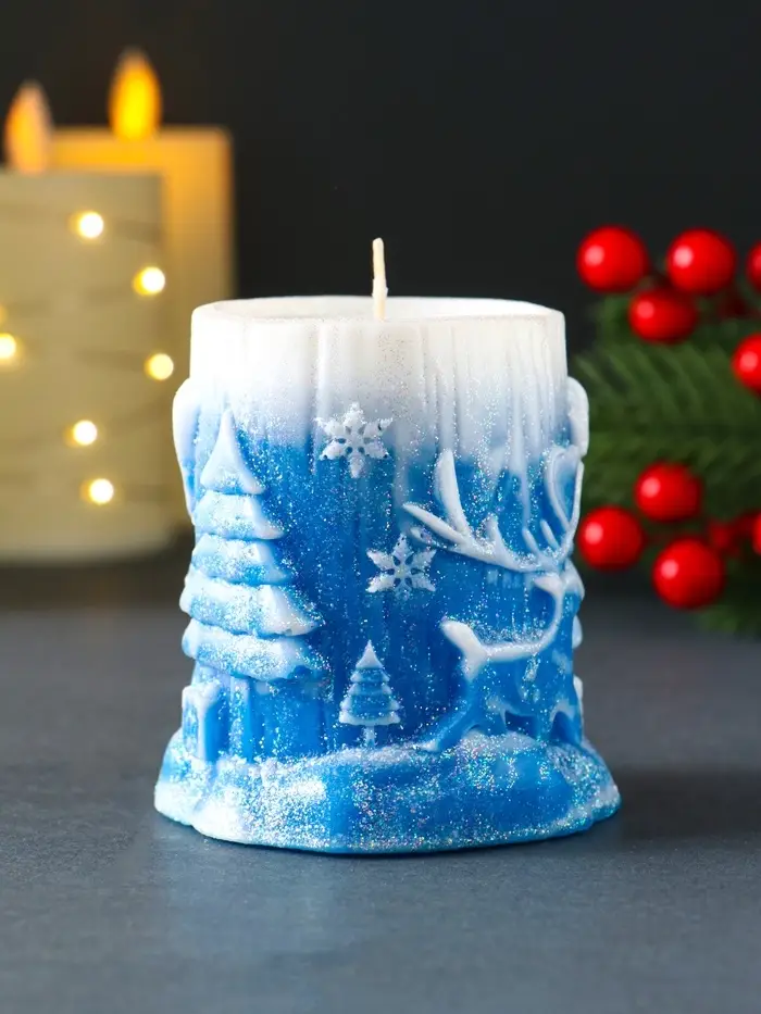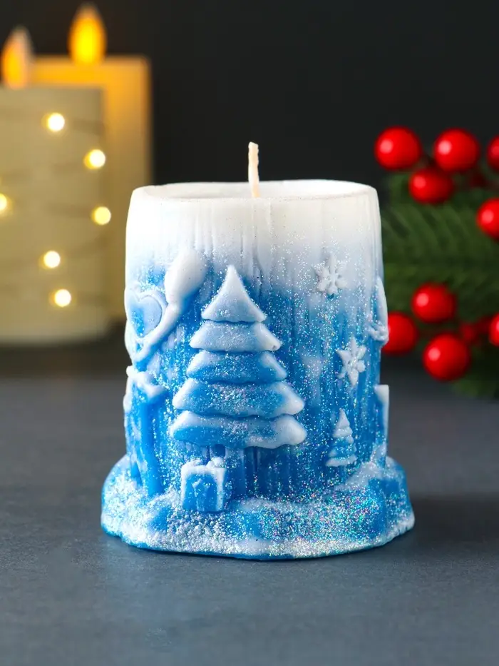 Свеча новогодняя столбик "Сказочный лес" 75х85 мм, синий
