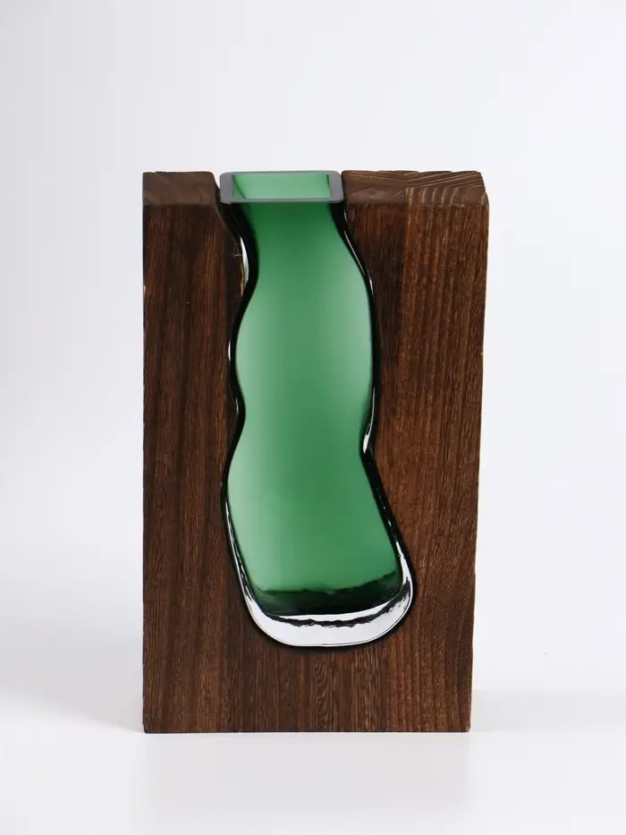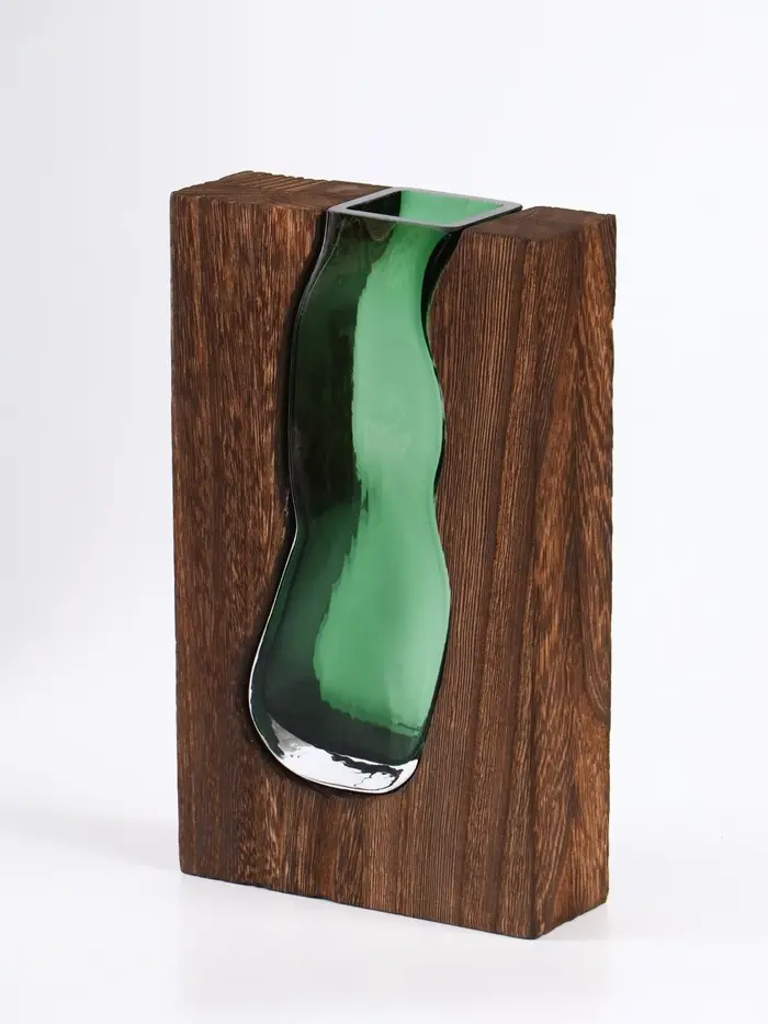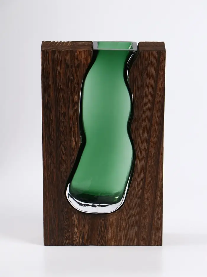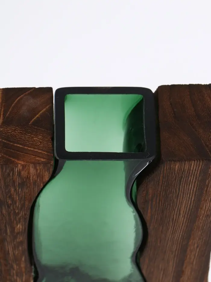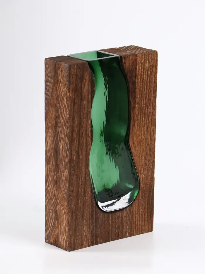 Прикоснитесь к искусству, созданному природой и мастером! Стеколянная ваза с деревянными элементами «Сэтернино» — это авторская работа, в которой гармонично соединились земля, огонь и творческая мысль. Она станет выразительным акцентом в интерьере, наполняя пространство теплом и уютом ручной работы.