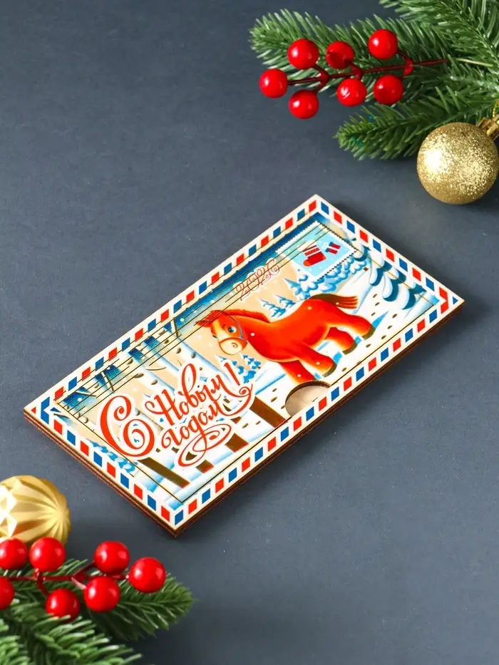 Купюрница "С Новым Годом" лошадь, шкатулка для денег