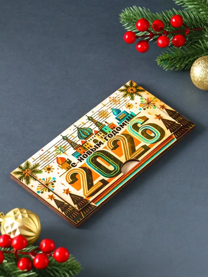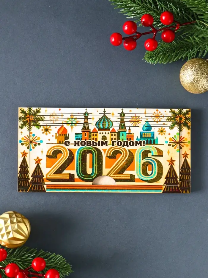 Купюрница "С Новым Годом 2026, Кремль" шкатулка для денег