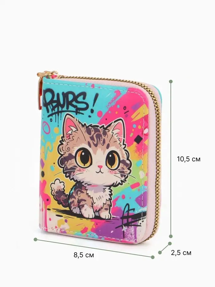 Яркий разноцветный кошелек с веселым котенком создан для девочек, которые любят все самое интересное. Этот аксессуар поднимает настроение и делает процесс хранения карманных денег более увлекательным.