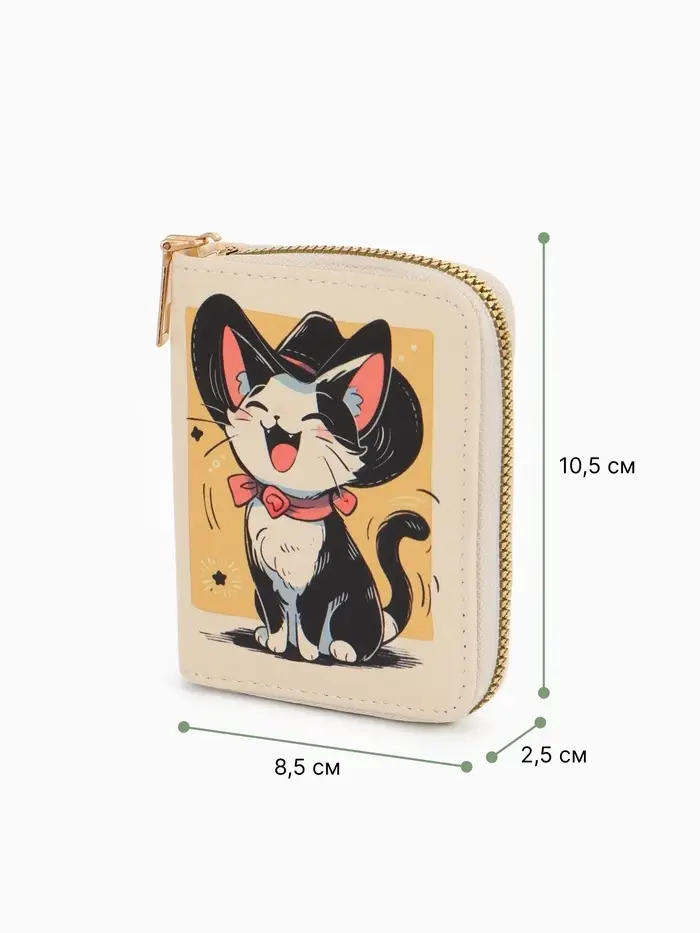 Кошелёк на молнии «Выбражулька», 8.5×2.5×10.5 см, с принтом, бежевый