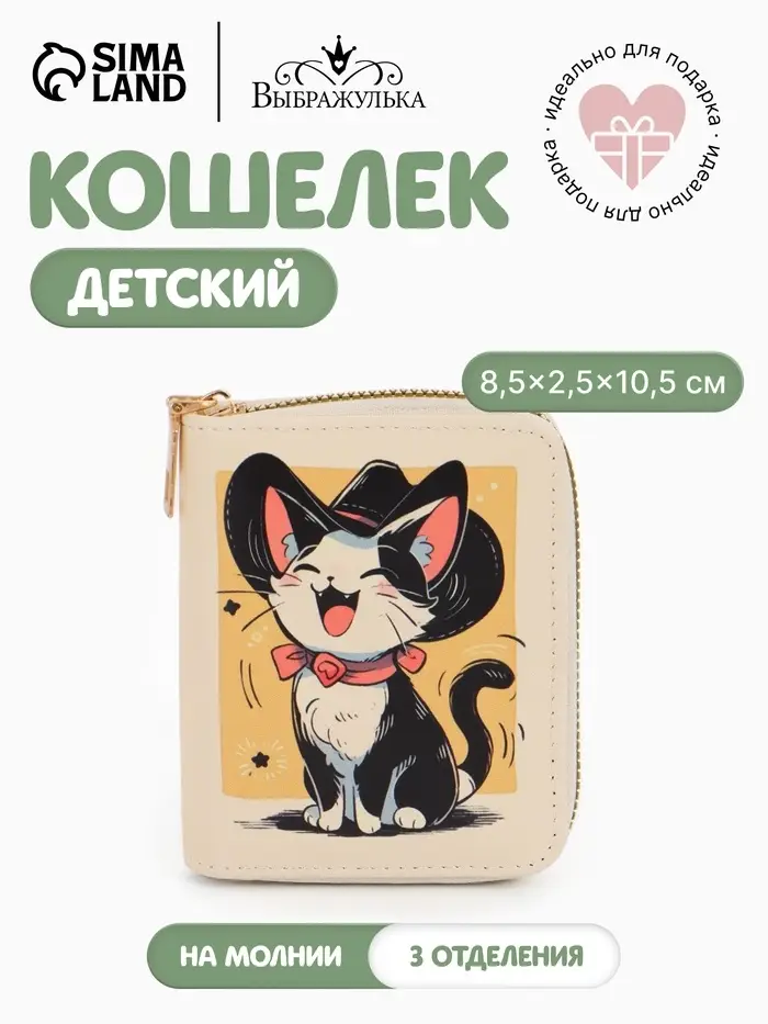 Нежный бежевый кошелек с изящным котенком создан для девочек, которые ценят спокойную элегантность. Этот аксессуар станет первым по-настоящему взрослым предметом в коллекции юной модницы, помогая хранить карманные деньги с особым стилем.