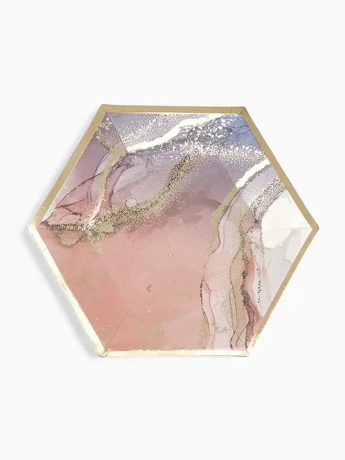 Набор тарелок мрамор розовый 23 см. (10 шт)