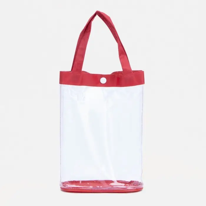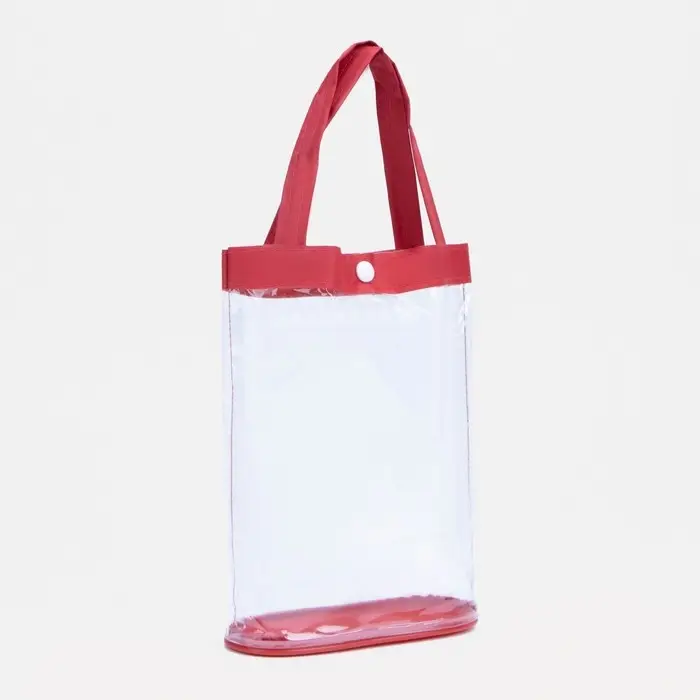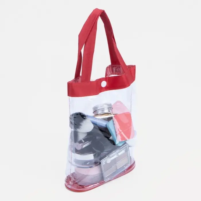 Косметичка на кнопке, с ручками, цвет красный/прозрачный