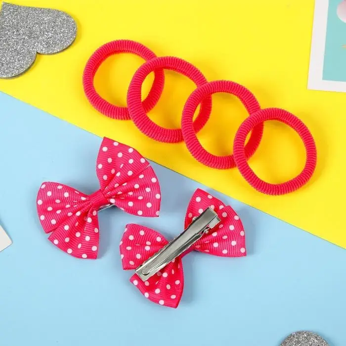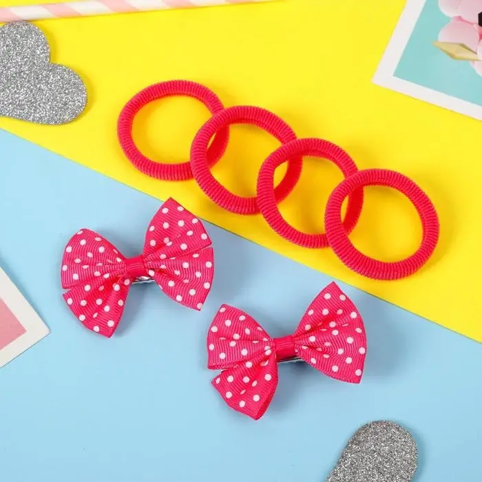 Набор для волос «Лада», 4 резинки, 2 зажима, горошек, розовый