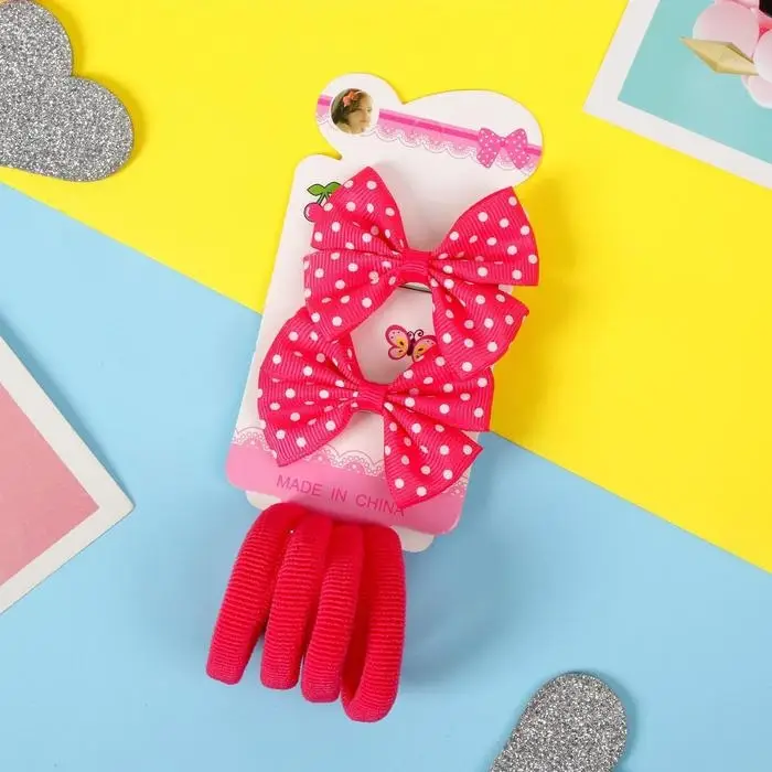 Розовый комплект аксессуаров для волос создан специально для девочек и включает разнообразные резинки и зажимы с горошковым узором. Этот набор помогает быстро и удобно фиксировать волосы в аккуратные прически на каждый день, сочетая функциональность с нежным дизайном.