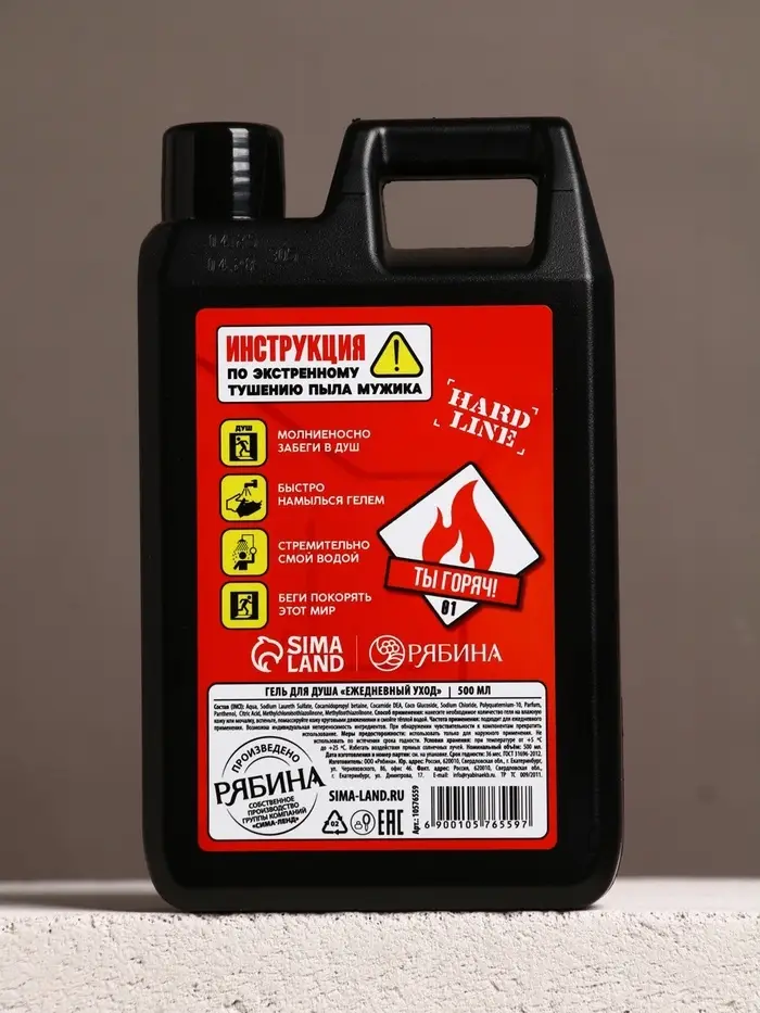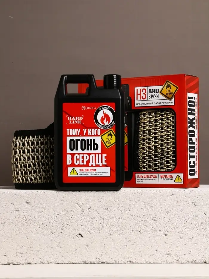 Подарочный набор «Мужику огонь», гель для душа канистра 500 мл и мочалка лента, HARD LINE
