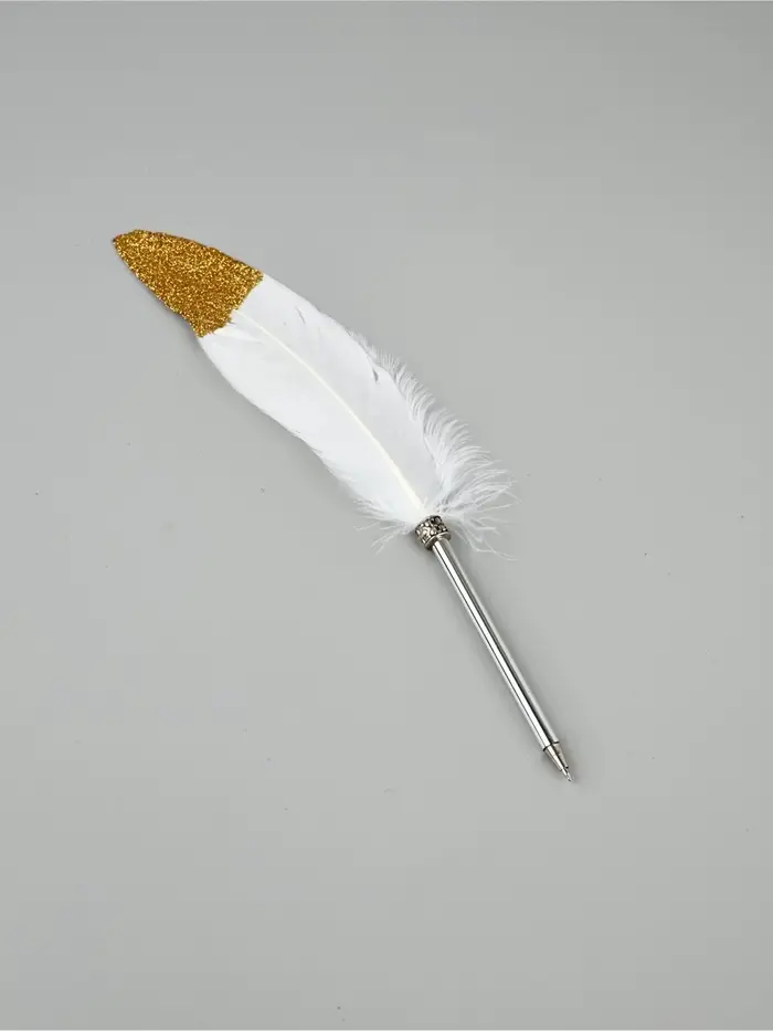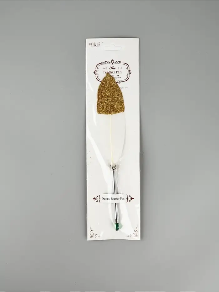 Перо белое+блестки золото (наконечник ручка), дл.25 см