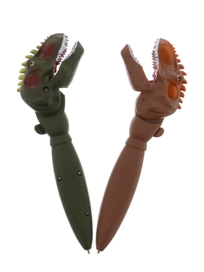 Ручка гелевая-прикол, Динозавр МИКС, с помощью кнопки пасть закрывается