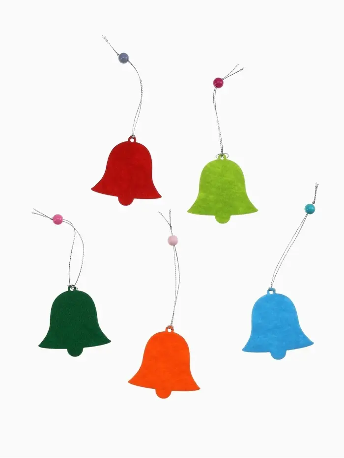 Набор ёлочных украшений «Колокольчики» — лёгкий акцент для тех, кто слышит праздник не только в огнях, но и в тишине. Пять мягких фетровых колокольчиков с резным узором создают ощущение предвкушения, будто каждый из них хранит свой звон — не громкий, но чистый, как первый снег или детский смех за окном. Мягкая фактура и объёмная форма придают игрушкам характер — они не просто висят на ёлке, а становятся частью домашнего ритуала.