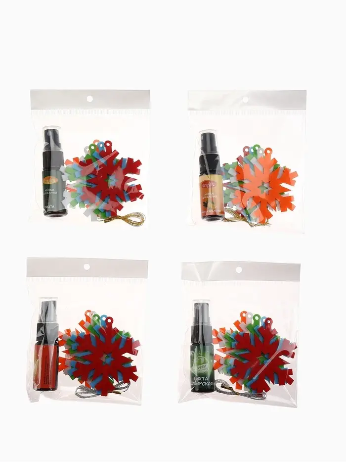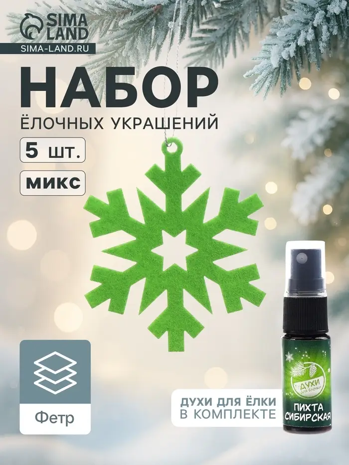 Набор ёлочных украшений «Снежинки» с ароматом — лёгкий акцент для тех, кто чувствует зиму не только в морозе, но и в тишине. Пять мягких фетровых снежинок с резным узором не просто украшают ёлку — они источают едва уловимый свежий аромат, будто приносят с собой запах первого снега, чистого воздуха за окном или утреннего инея на ветвях. Каждая фигурка словно замерзшее дыхание зимы, сохранённое в тёплой, тактильной фактуре.