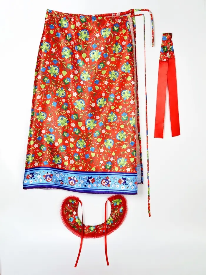Карнавальный набор "Народная краса" юбка р-р 40-48, воротник, повязка, цвет красный