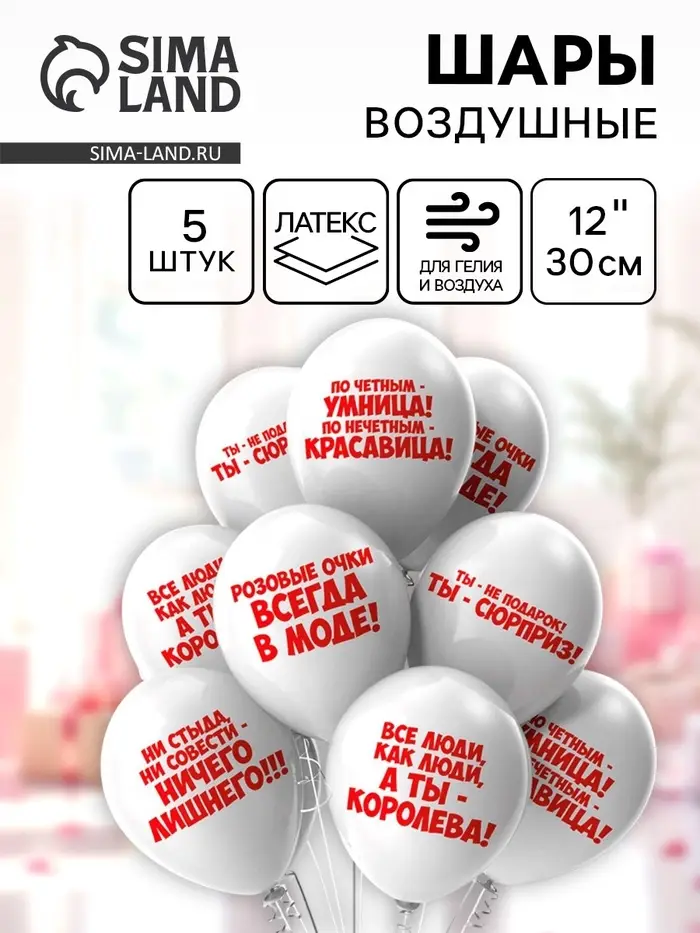 Воздушные шары латексные 12" "Комплимент девушкам" пастель МИКС, 2ст., набор 5 шт.