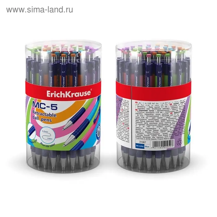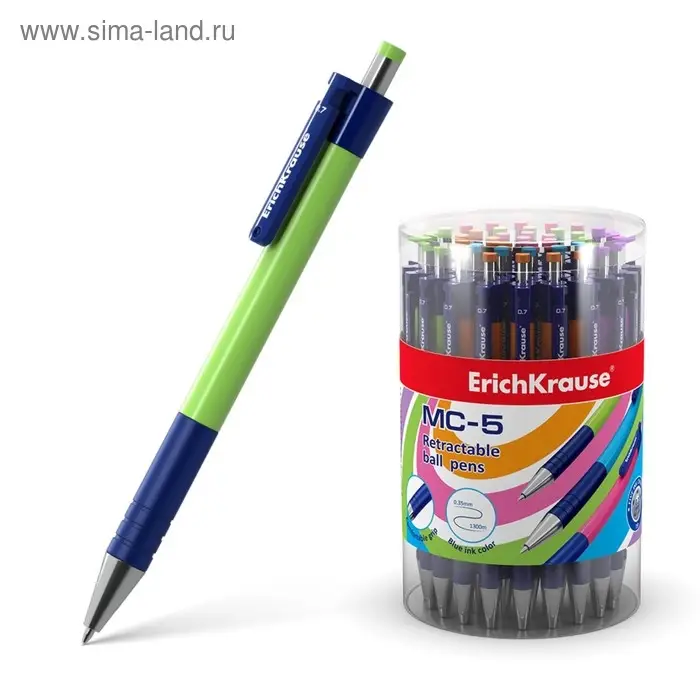 Ручка шариковая автоматическая MC-5, узел 0.7 мм, чернила синие, резиновый упор, длина линии письма 1300 метров, микс