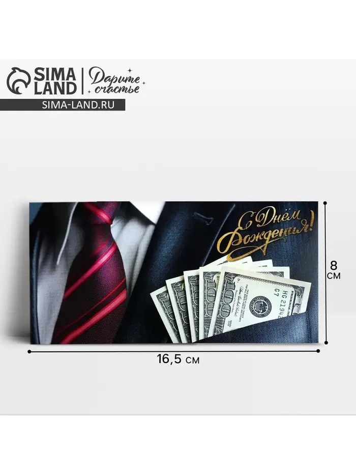Конверт для денег «С Днём рождения!», купюры в кармане, 16.5 × 8 см