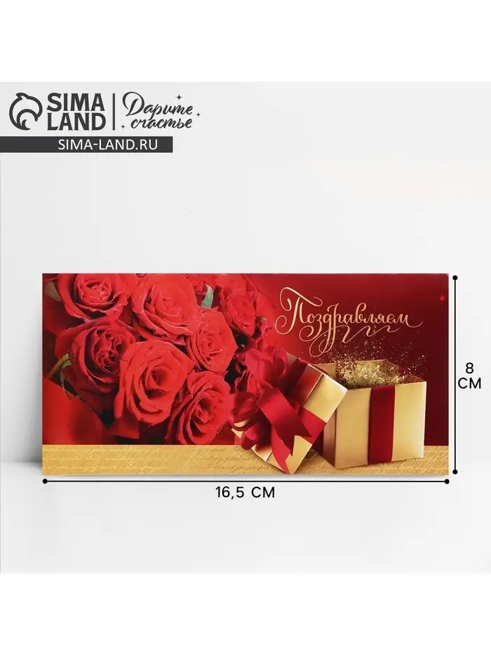 Конверт для денег «Поздравляем!» розы, 16.5 × 8 см