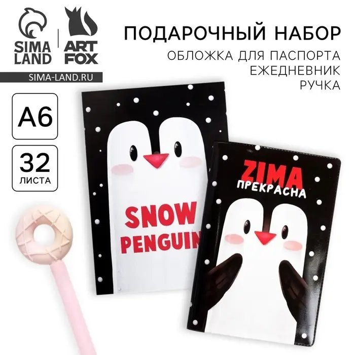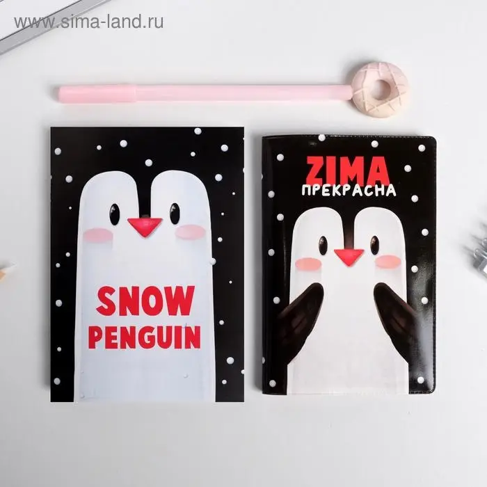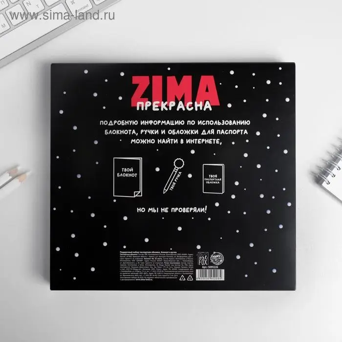 Подарочный набор новогодний: обложка для паспорта полноцвет, блокнот прикол и ручка «ZIMA прекрасна»