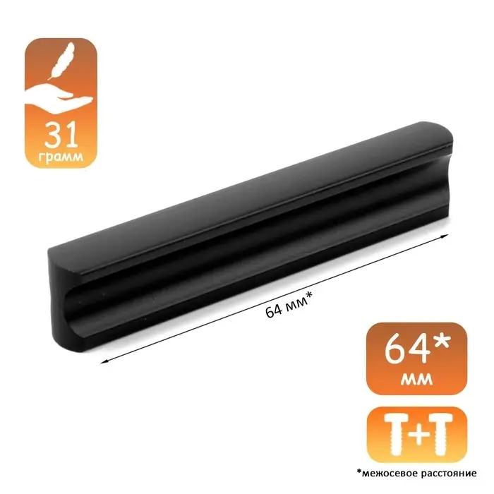 Ручка-скоба CAPPIO RSC022, алюминий, м/о 64 мм, цвет черный