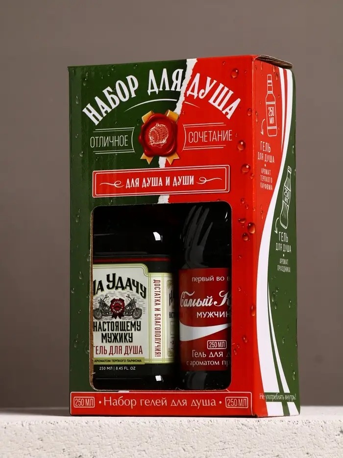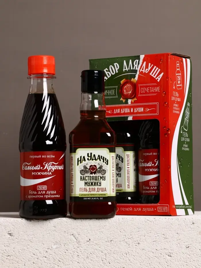 Подарочный набор «Для душа и души», гель для душа во флаконе виски и гель для душа кола, 2х250 мл, Чистое счастье