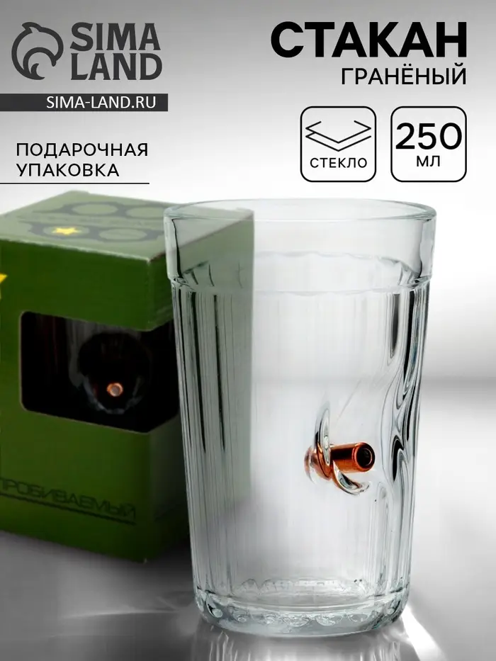 Стакан непробиваемый с пулей «Военный», гранёный, 250 мл