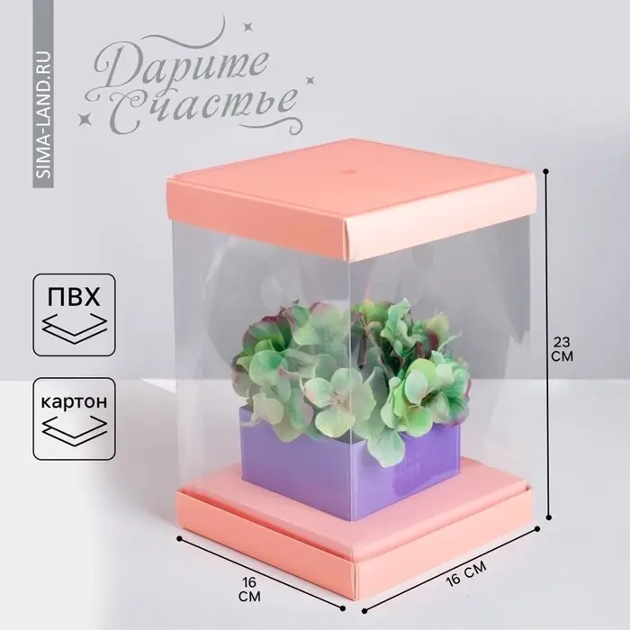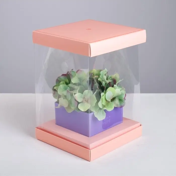 Коробка для цветов с вазой и PVC окнами складная «Нежность», 16 х 23 х 16 см