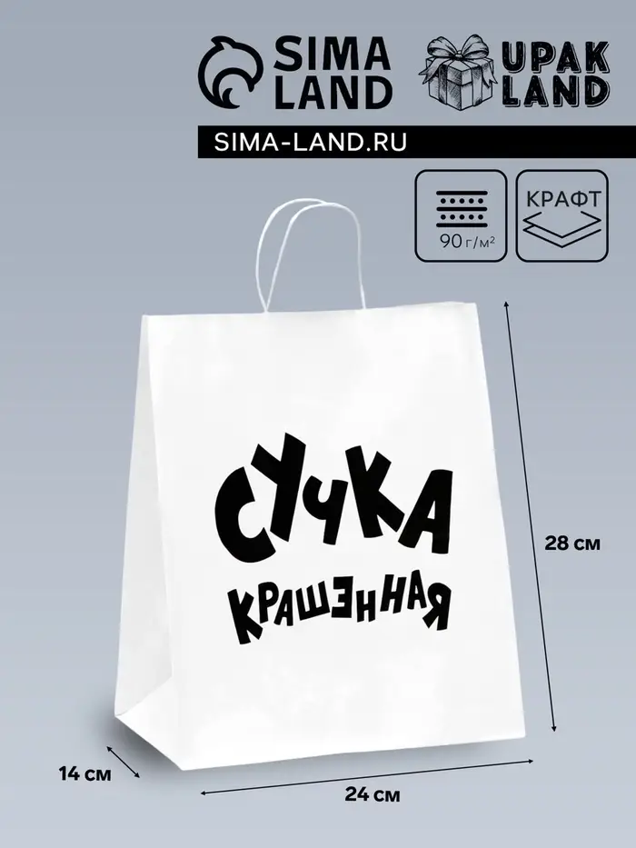 Пакет подарочный с приколами, крафт «Крашенная», белый, 24×14×28 см