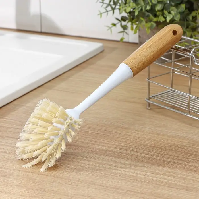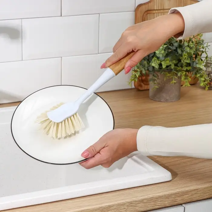 Щётка для посуды Доляна Meli, 8×6,5×29 см, бамбуковая ручка, цвет бежевый