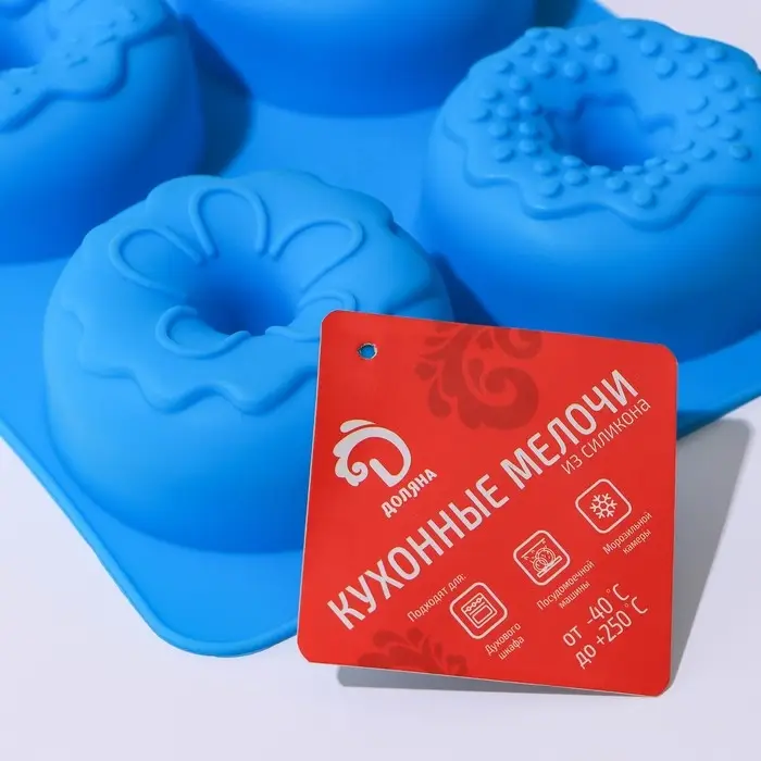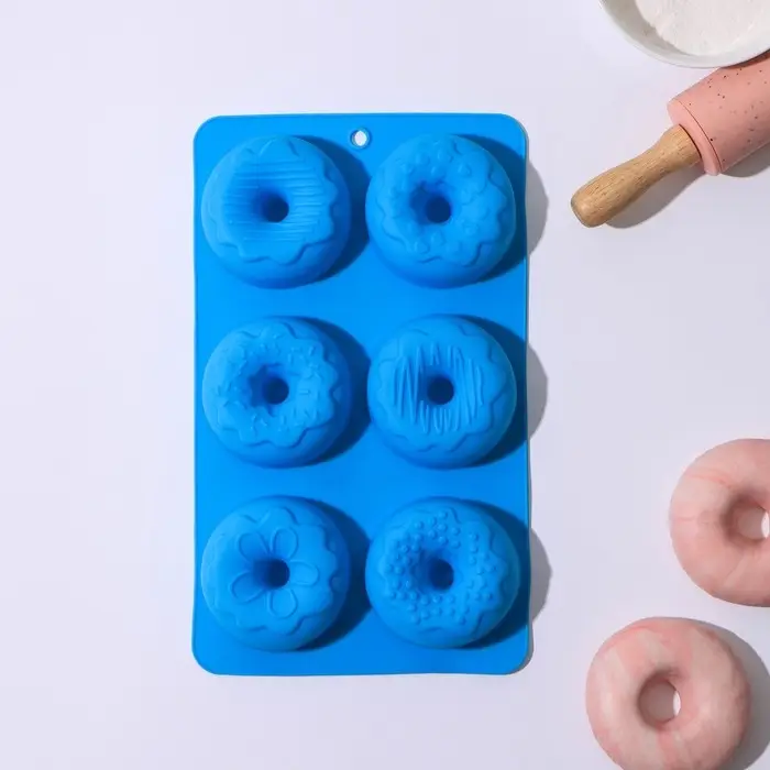Форма для выпечки Доляна «Сладости. Пончики в глазури», силикон, 27,2×16,4×3,2 см, 6 ячеек, цвет МИКС