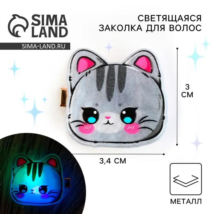 Заколка для волос светящаяся «Котик», 3.4 х 3 см