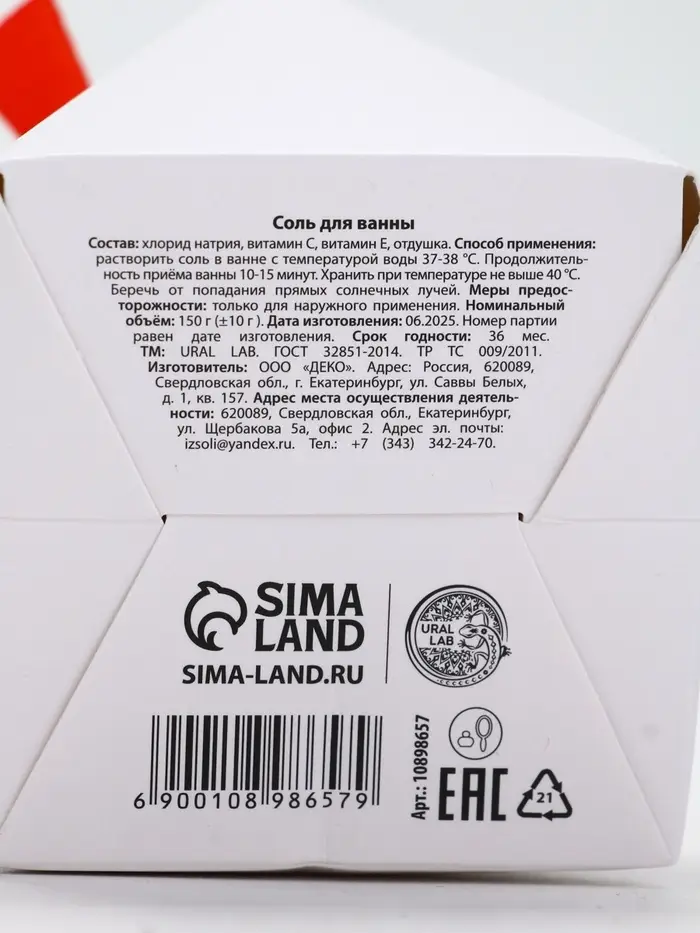 Соль для ванны в коробке с атласным бантом, 150 г, URAL LAB