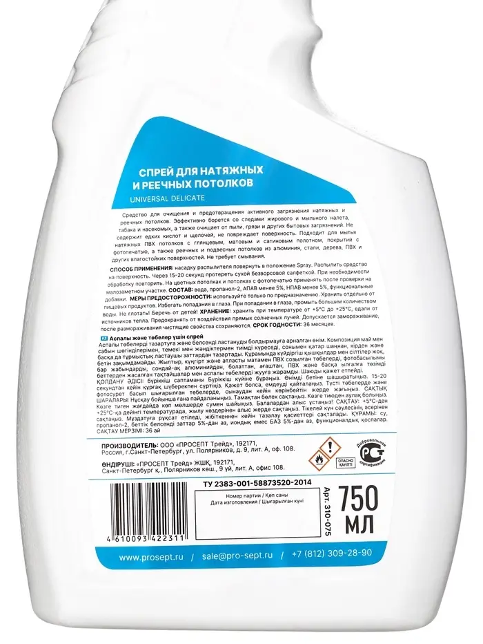 Спрей для натяжных и реечных потолков Universal Delicate, 750 мл