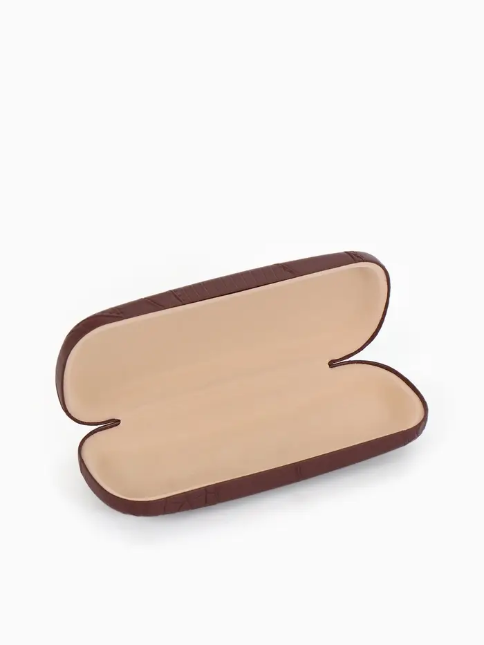 Футляр сохраняет очки в безопасности даже при ограниченном пространстве. Коричневый цвет выглядит естественно и сочетается с разными материалами. Узкая форма удобна для ношения в кармане пиджака или куртки без создания лишнего объёма.