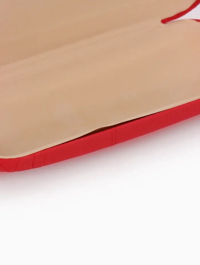 - Насыщенный красный цвет делает футляр заметным среди вещей.