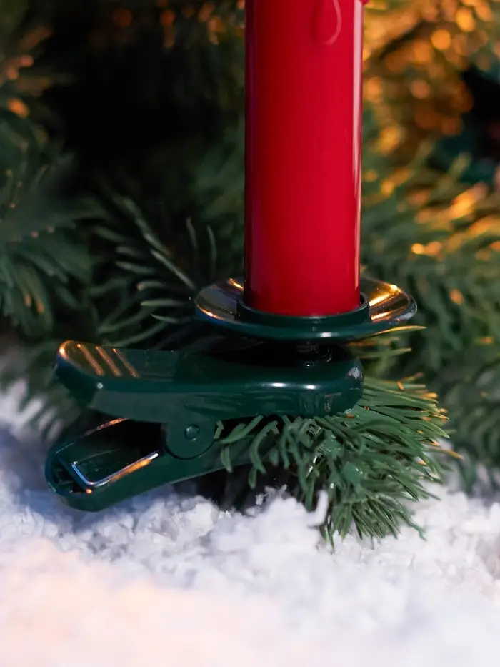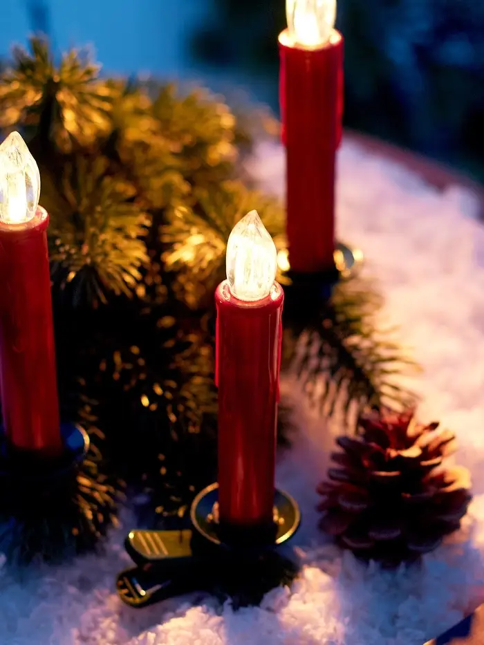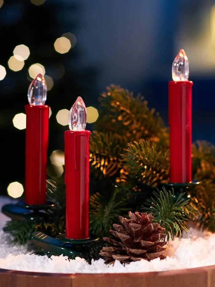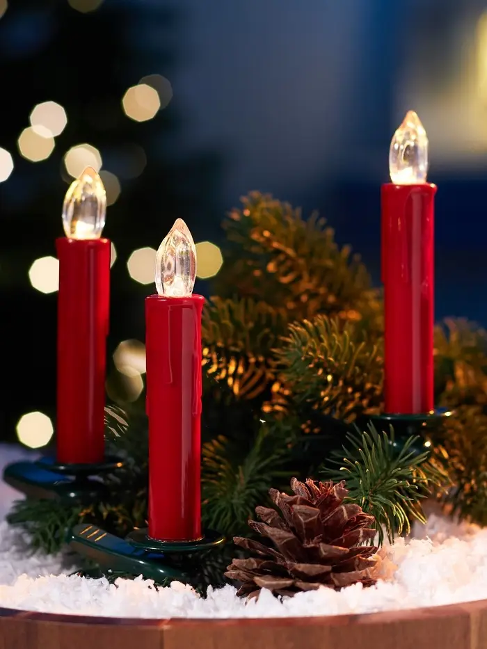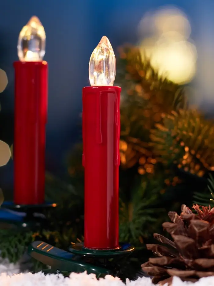 Светодиодные «Свечи на прищепках красные» 11 см, набор 10 шт, 10 LED, от батареек ААх10, пульт, свечение тёплое белое