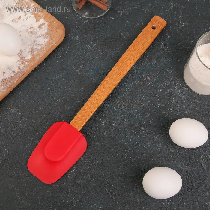 Изделие выполнено из пищевого силикона. Главное преимущество силиконовых лопаток – это то, что они не царапают поверхность посуды и не впитывают запахи, а также легко моются.