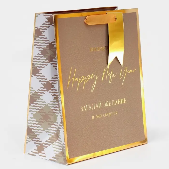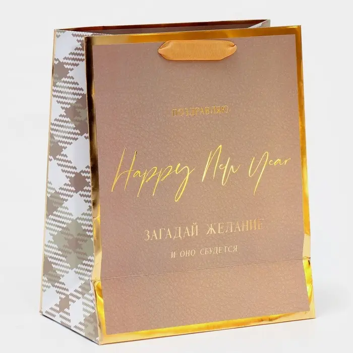 Пакет подарочный новогодний ламинированный «Загадай желание», 21.5 х 25 х 10 см